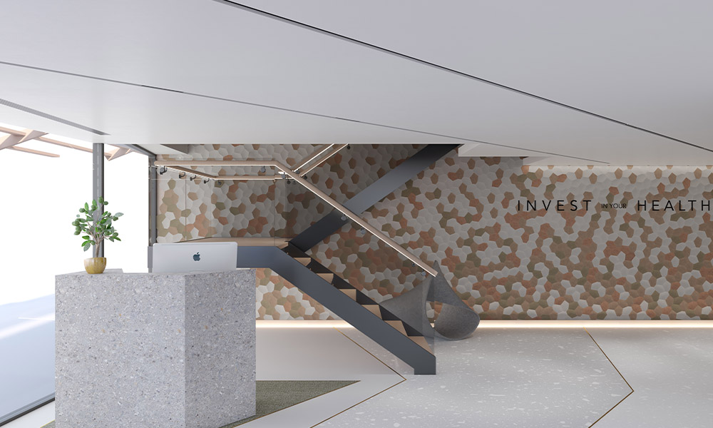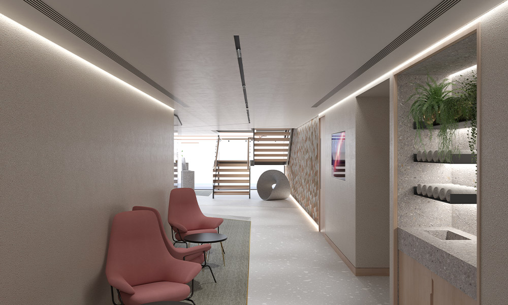 Along with providing wellness strategy and consultation, zynk have designed a space full of natural material and textures, taking inspiration for the pavilions natural setting and the Surrey landscape.