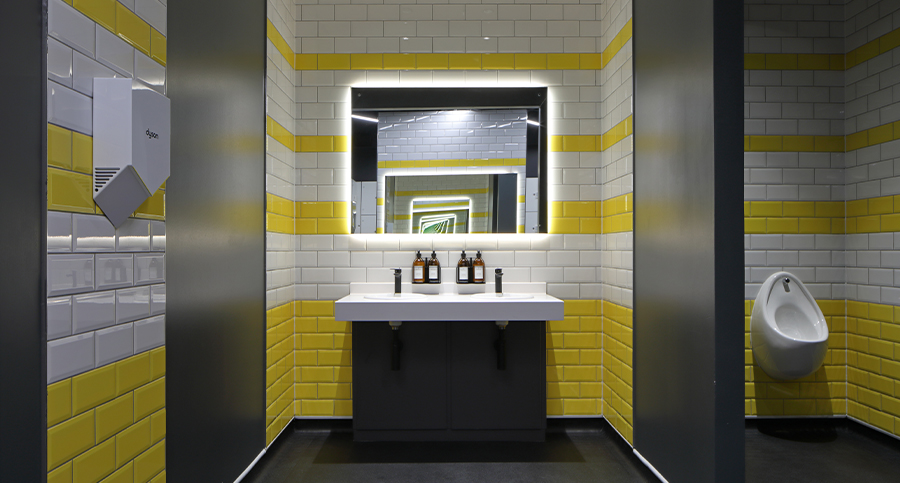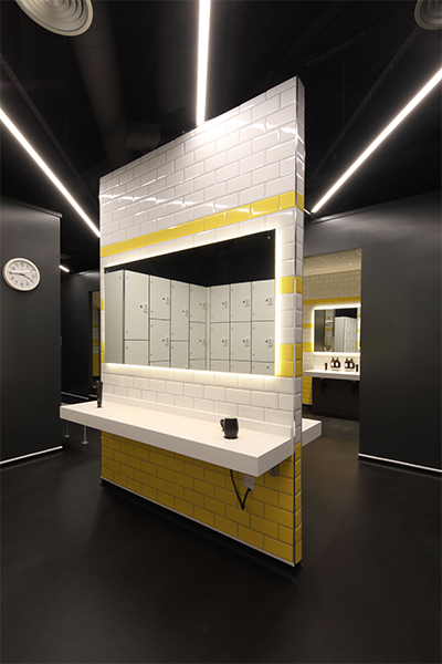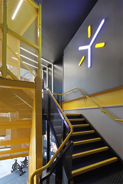 Working with the brand’s core concepts and colour scheme, zynk developed a complimentary colour palette consisting of yellow and storm grey tones offset by a black and white backdrop. Together, these hues successfully translate across a mixture of materials including concrete, timber and mesh, adding a lux overtone to an industrial theme.