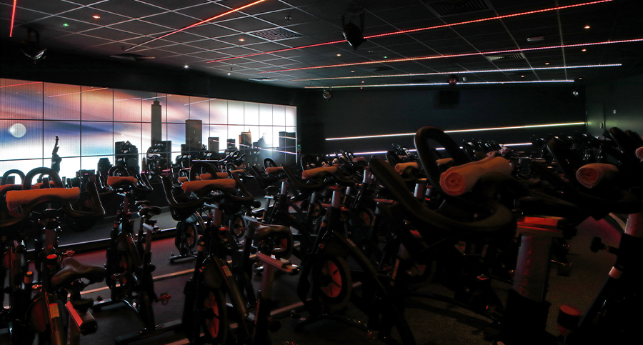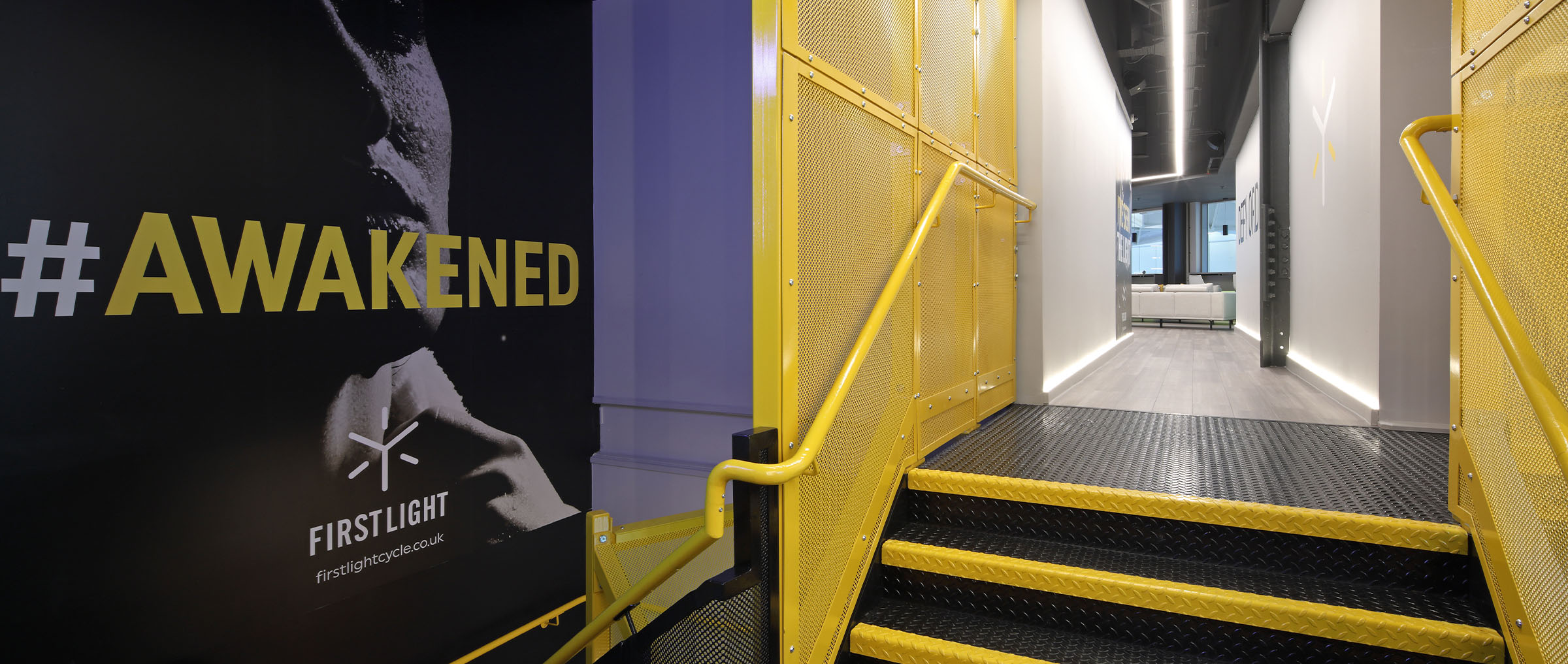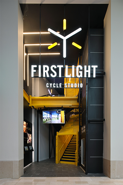 Translate the essence of First Light Cycling into a fresh, energetic indoor cycle studio with an interior that magnifies the visual, acoustic and graphical elements of the brand’s ethos.