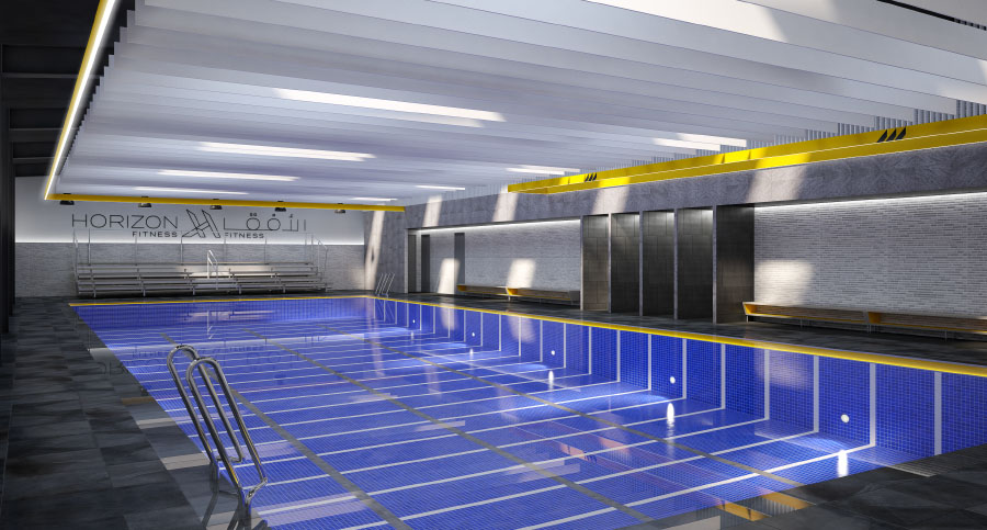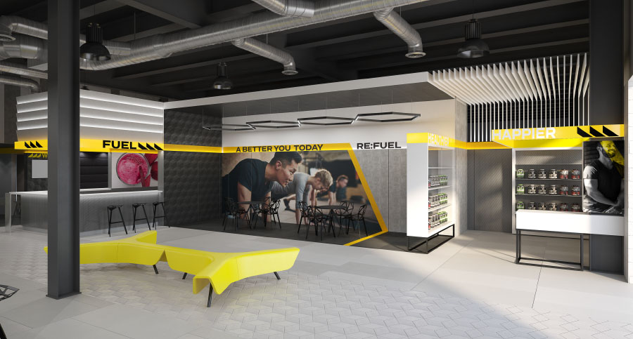zynk presented Horizon with three different design directions before proceeding with an agreed primary colour palette comprising blue, yellow and purple. Internal configurations were reconceptualised to improve customers’ journeys from initial sign-up through all health and fitness zones. zynk also had to consider cultural requirements for separate male and female areas, plus mixed areas for expats, ensuring the smooth processing of all members between each zone.