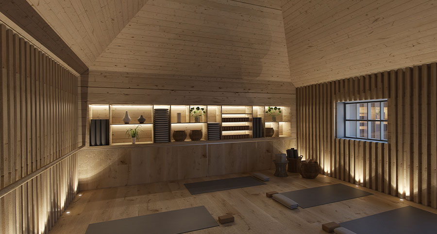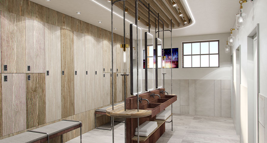 Working within the defined look of the building, zynk created a distinctive and sophisticated interior by fusing a contemporary neutral colour pallet with elements of the building’s dairy farming legacy. Bespoke vanity units are designed using salvaged milking machinery and lighting suspended from the ceiling in a maze of milk bottles creating a unique ambience. Internal spatial configurations ensure an intelligent equipment layout for an efficient member journey through key touch points.