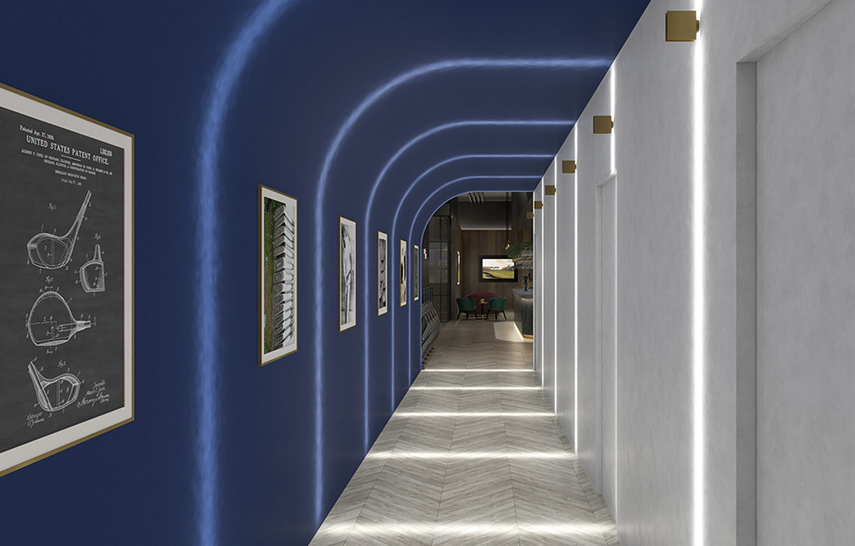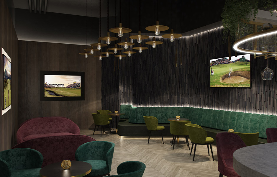 Recreate all the appealing elements experienced in a game of golf and combine these with the convenience of a world-class simulated golf course in a central London location. Individual golfing areas open into a central area where players and spectators can enjoy the game and socialise in comfort. The facility also offers members luxurious and generous changing facilities as well as providing access to a laundry service, private shower, and change pods. The interior is modern and classy, but minimal enough to give golf the centre stage throughout.